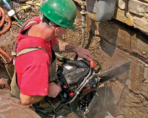 Aprenda cómo funciona la tecnología PowerGrit para mantenerle seguro al cortar tubos o tuberías en la zanja.